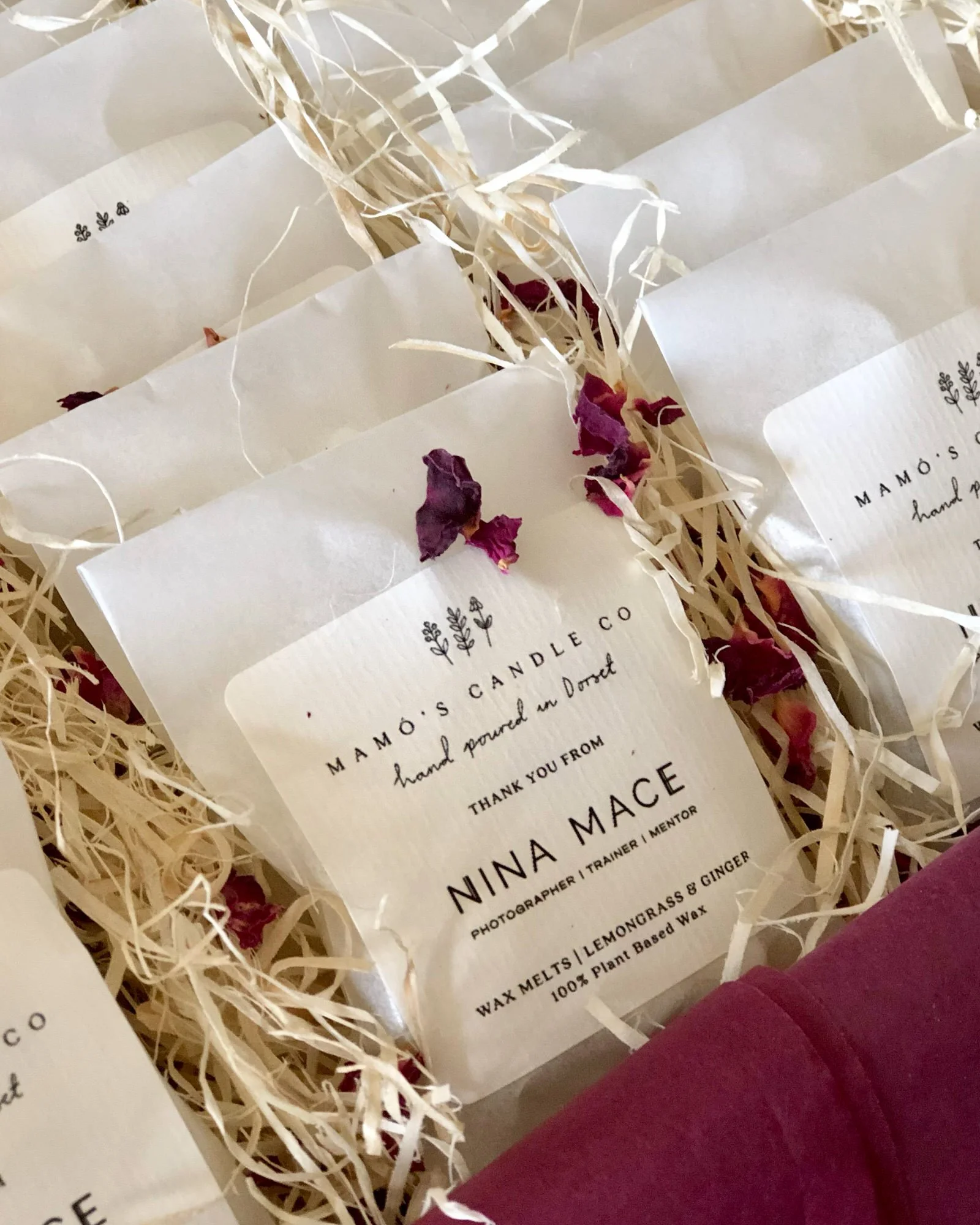 Looking for a way to make your clients feel that extra bit special? Mamo’s offer a customised service for you to display your brand in a creative way, using your logo within the sleeves to our branded wax melts.